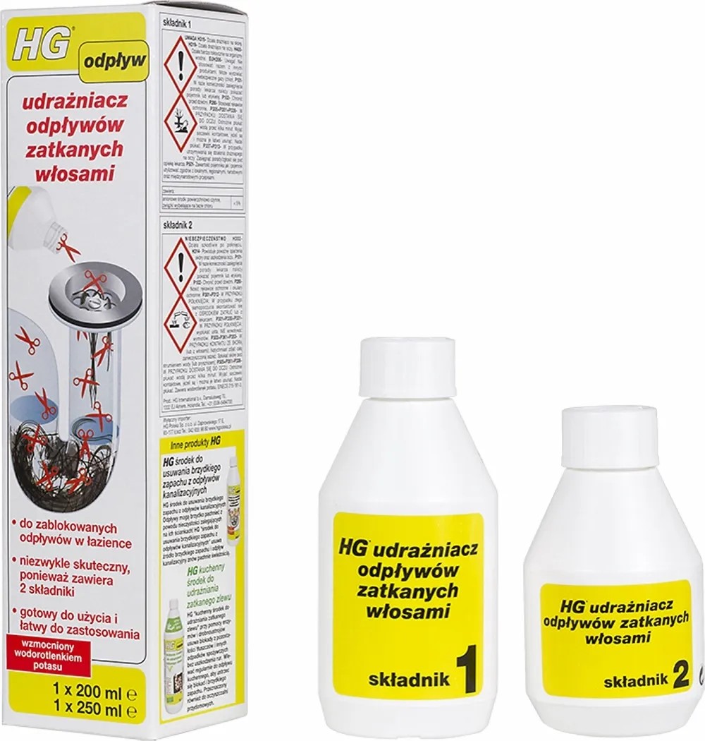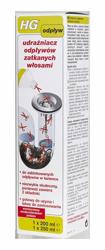 Środek do udrażniania rur zatkanych włosami, firmy HG.
