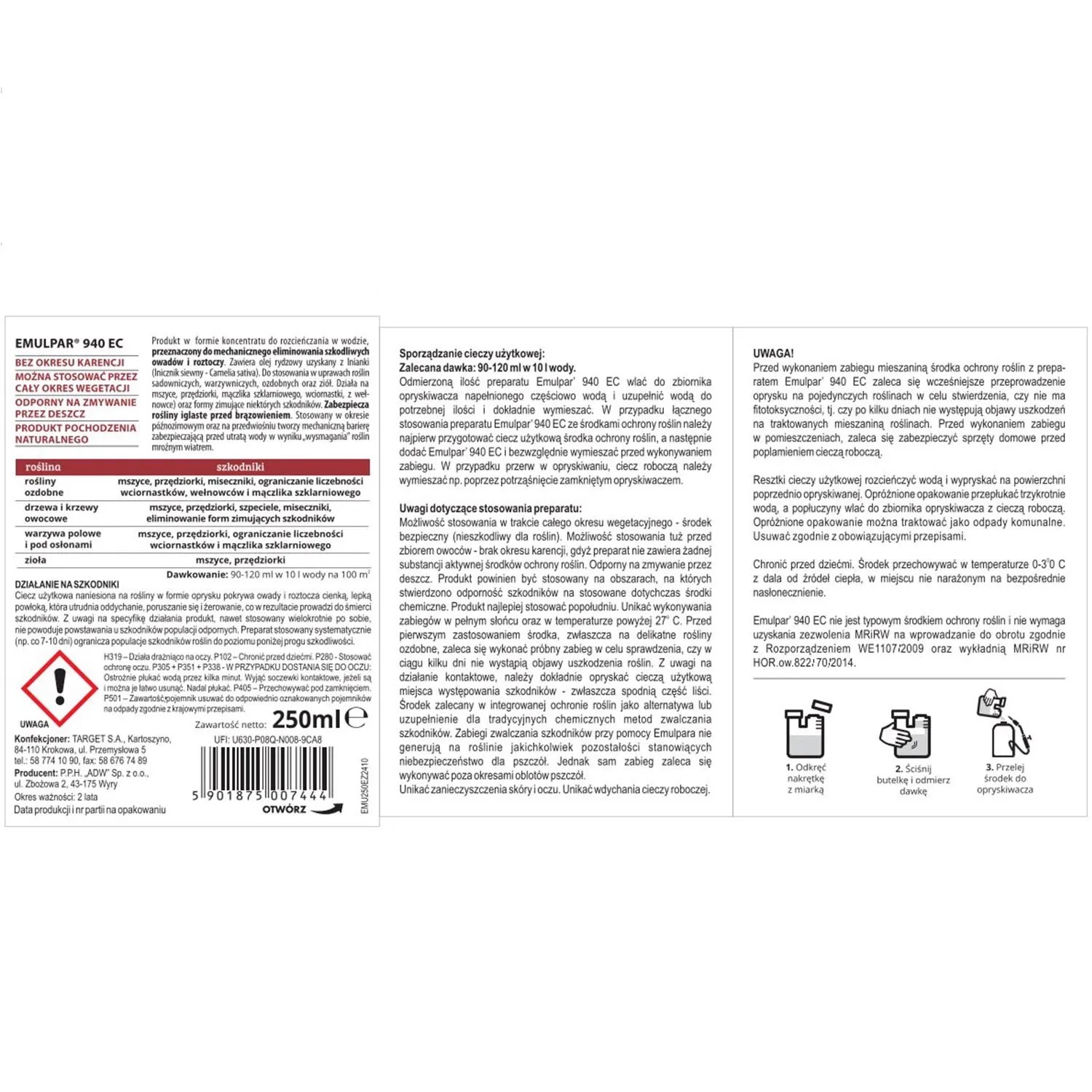 Target Natural Środek zwalczający szkodniki Tui i iglaków Emulpar 940 EC 250 ml