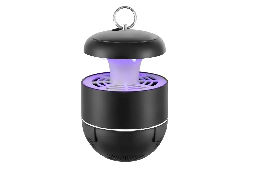 Przenośna lampa owadobójcza, zasilana USB. Bezpieczna - zabija owady bez użycia prądu. Do użytku wewnątrz pomieszczeń.