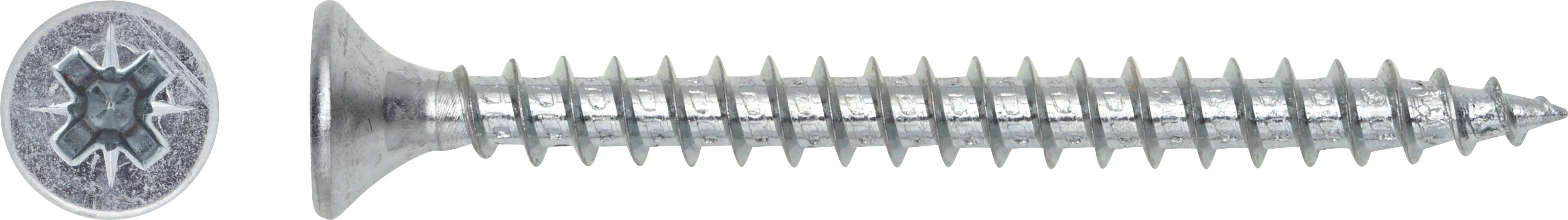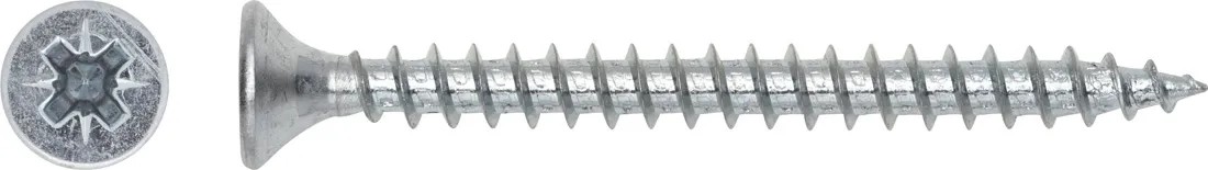 Śruba jest wykonana ze stali. Powłoka cynkowa nadaje jej wysoką wytrzymałość. Zapewnia również ochronę przed korozją. Łeb stożkowy umożliwia pogłębianie wgłębne materiału. Łeb śruby można łatwo otynkować, aby nie był już widoczny. Zakres dostawy obejmuje 25 sztuk.