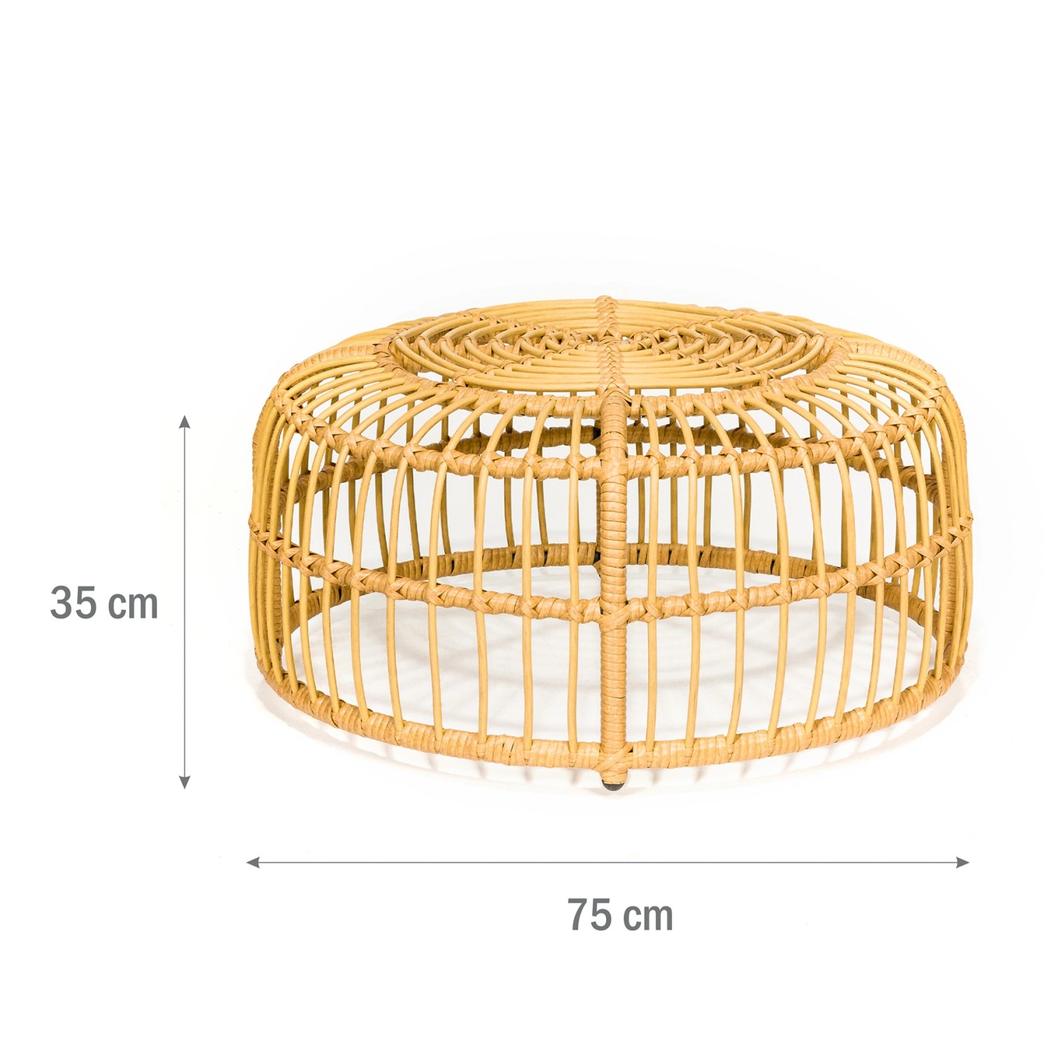 Stolik kawowy LAO na stalowym stelażu w oplocie technorattanowym. Maksymalne obciążenie statyczne to 50 kg.