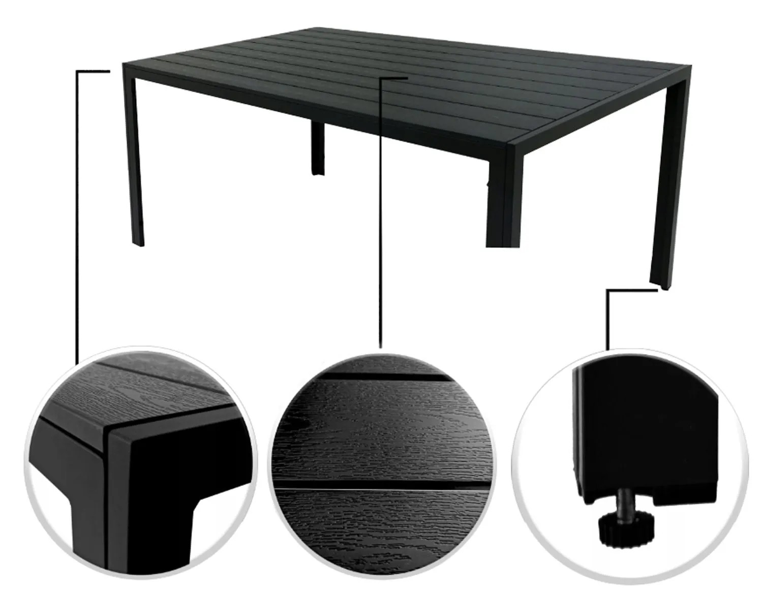 Stelaż mebla został wykonany ze stali lakierowanej proszkowo, dzięki czemu będzie służył przez wiele sezonów. Antracytowy kolor konstrukcji i blatu nadaje mu nowoczesny charakter, harmonijnie komponując się zarówno z klasycznymi, jak i nowoczesnymi aranżacjami ogrodowymi.