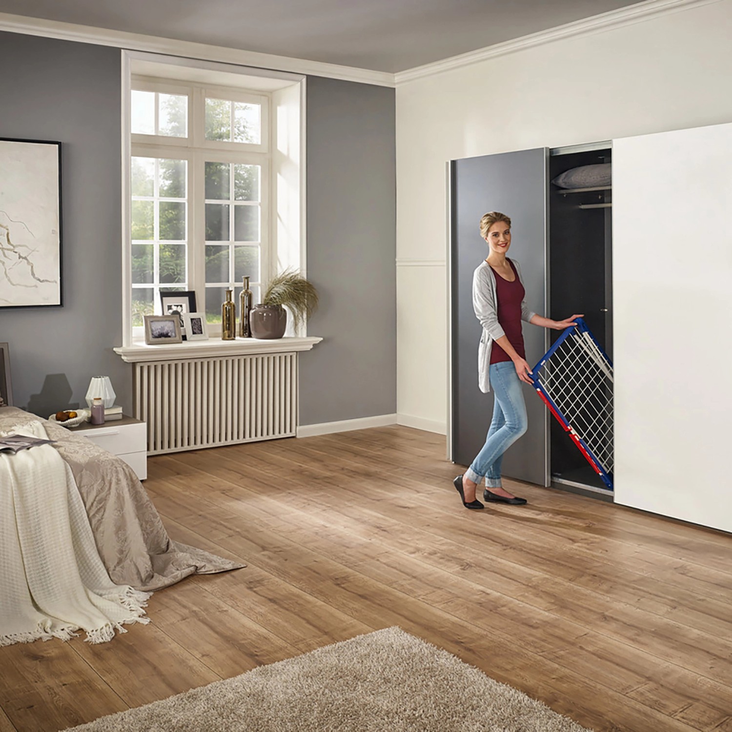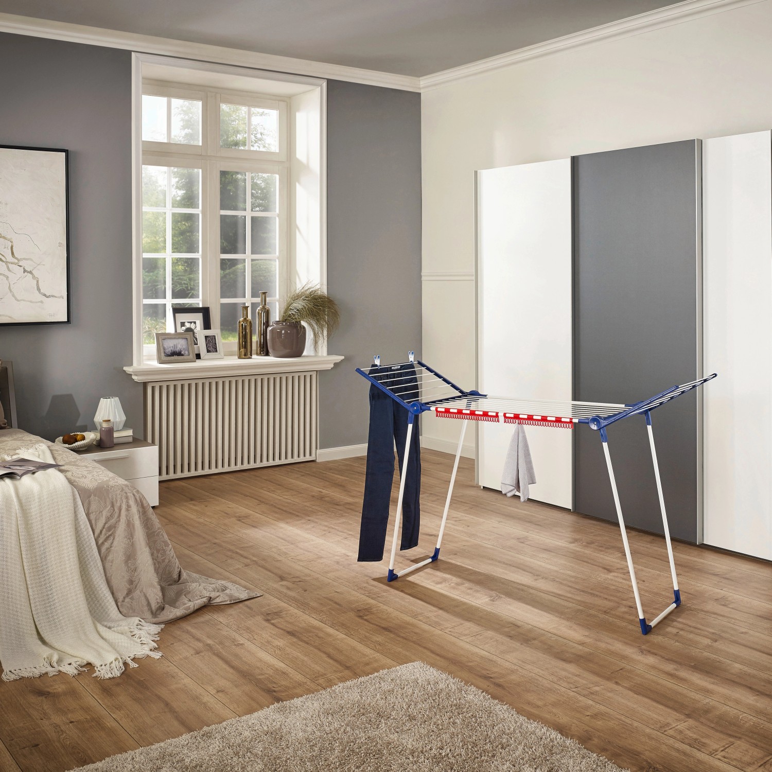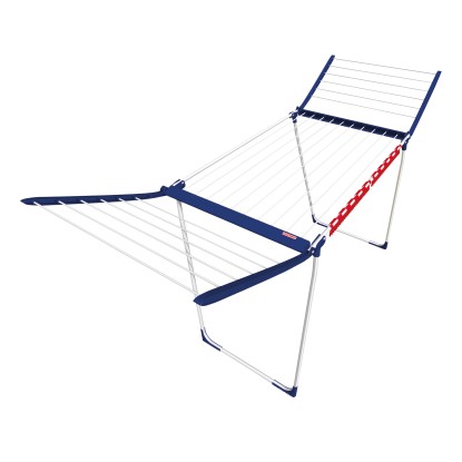 Suszarka Pegasus 150 Solid Slim zapewnia miejsce na 1,5 zawartości pralki. Rozkładane boczne skrzydła pozwalają na suszenie dłuższych elementów garderoby, takich jak spodnie czy sukienki, bez obaw o to, że będą mieć kontakt z podłożem. Kompaktowa forma po złożeniu tego modelu umożliwia przechowywanie suszarki marki Leifheit w niewielkim schowku czy szafie. Złożona na płasko ma wymiary: 7 cm wys. x 94,5 cm szer. x 54,5 cm gł.(w stanie rozłożenia: 87 cm wys. x 157 cm szer. x 55 cm gł.). Do modelu Pegasus 150 Solid Slim dołączone są 2 praktyczne uchwyty na małą garderobę, dzięki którym można zrezygnować ze spinaczy do bielizny i znaleźć dodatkowe miejsce na pranie. Suszarka została wyprodukowana w Europie i objęta jest 5-letnią gwarancją.