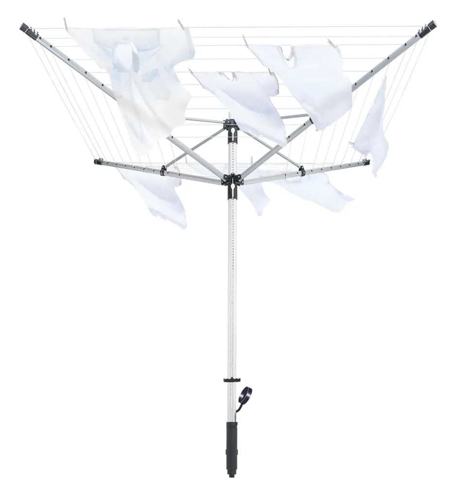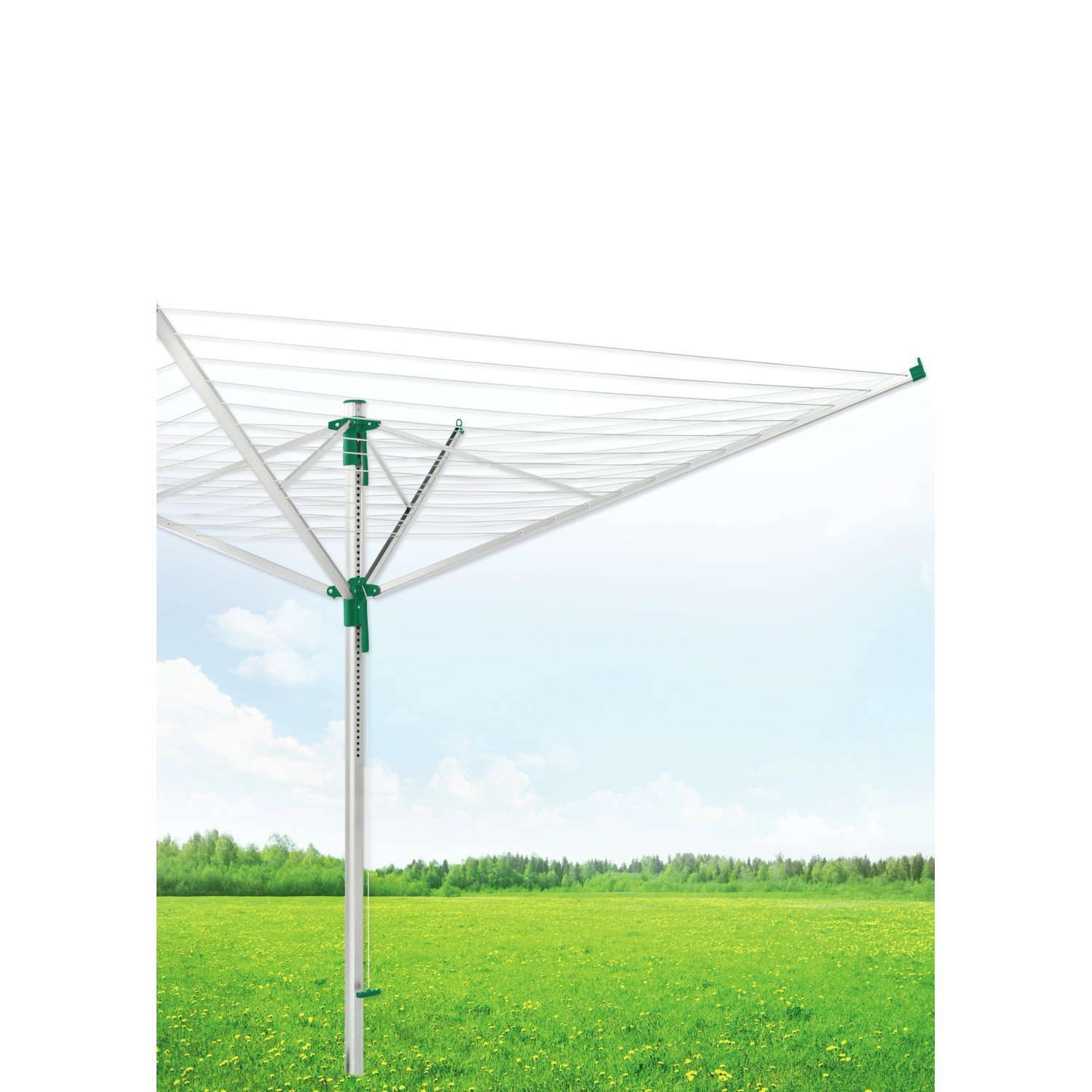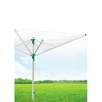 Suszarka ogrodowa Linolift 500 to zapewniająca łatwość i komfort użytkowania idealna propozycja do nawet niewielkiego ogródka lub na działkę. Model Linolift 500 został wykonany z najwyższej jakości materiałów odpornych na warunki atmosferyczne i promieniowanie UV. Konstrukcja, mimo swej lekkości, jest bardzo trwała. Suszarkę wyposażono w system ułatwiający jej rozkładanie - wystarczy do tego jedno pociągnięcie linki. Można więc obsługiwać ją jedną ręką. Linolift 500 posiada także regulację wysokości: od 85 do 180 cm, więc znakomicie sprawdzi się w przypadku osób zarówno wysokich, jak i niskich, a ubrania nie będą brudzić się z powodu kontaktu z ziemią. Na czterech stabilnych ramionach suszarki Linolift 500 rozpięto aż 50 metrów linek, co pozwala na rozwieszenie 5 wsadów pralki. Przekątna tego modelu to 2,55 m, więc suszarka nie zajmuje dużo miejsca, a mimo to, dzięki 1,76 m długości linki zewnętrznej, można na niej zmieścić także większe pranie, jak obrusy czy pościel. Linolift 500 marki Lefiheit wyróżniają również praktyczne dodatki. Dwanaście uchwytów na końcu ramion umożliwia suszenie koszul czy bluzek na wieszakach, które nie spadną nawet podczas intensywnego wiatru. Do zestawu dołączona jest także podstawa ogrodowa do zabetonowania oraz odporny na rozerwanie pokrowiec ochronny. Dzięki niemu, gdy suszarka jest złożona, jej linki nie brudzą się od deszczu, kurzu czy pyłu. Model Linolift 500 objęty jest 2-letnią gwarancją.
