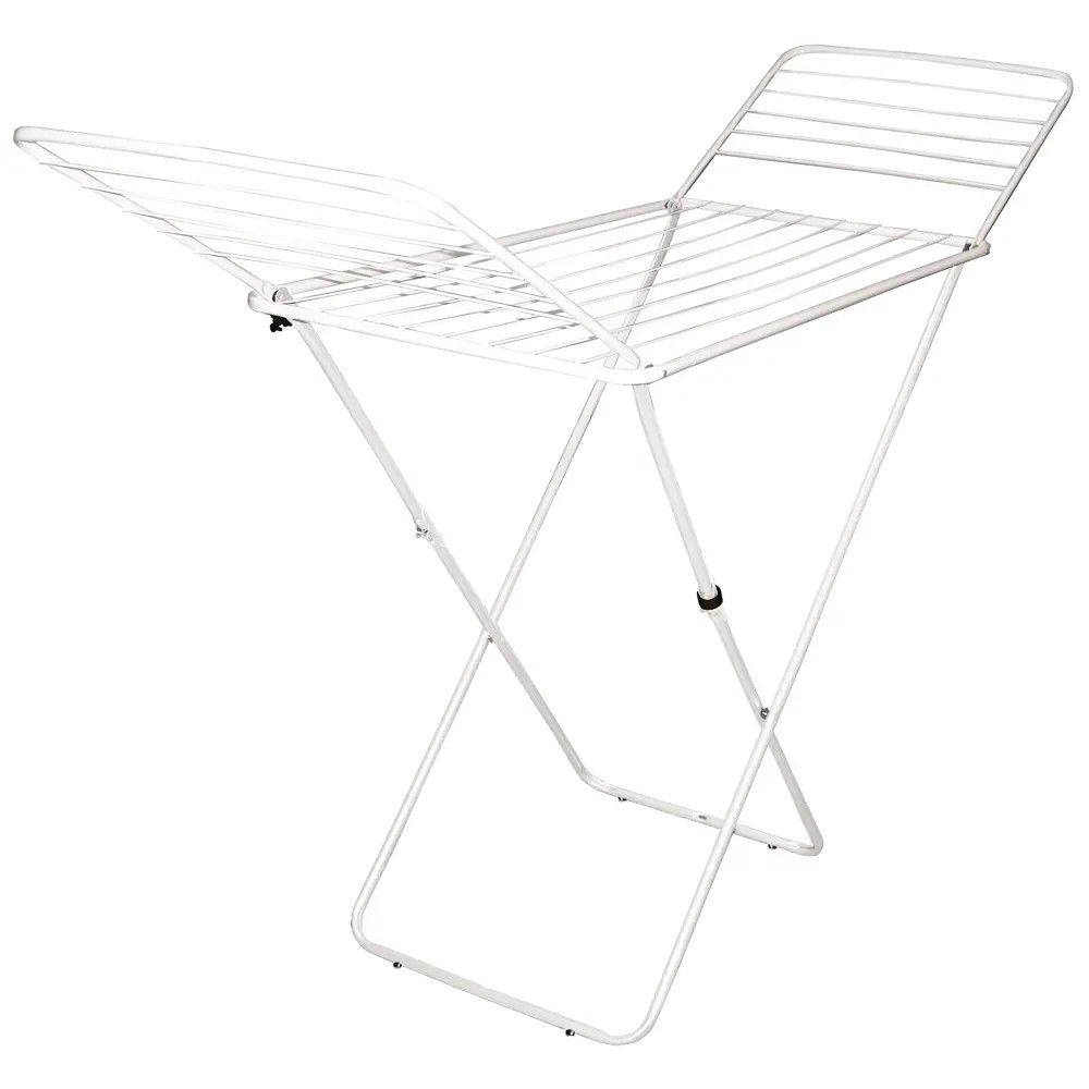 Stabilna suszarka do bielizny z rozkładanymi skrzydłami o łącznej powierzchni suszenia 18 m. Suszarka wyposażona jest w system łamanej nogi ułatwiający składanie suszarki, nitowane zawiasy oraz antypoślizgowe nakładki na nóżki.