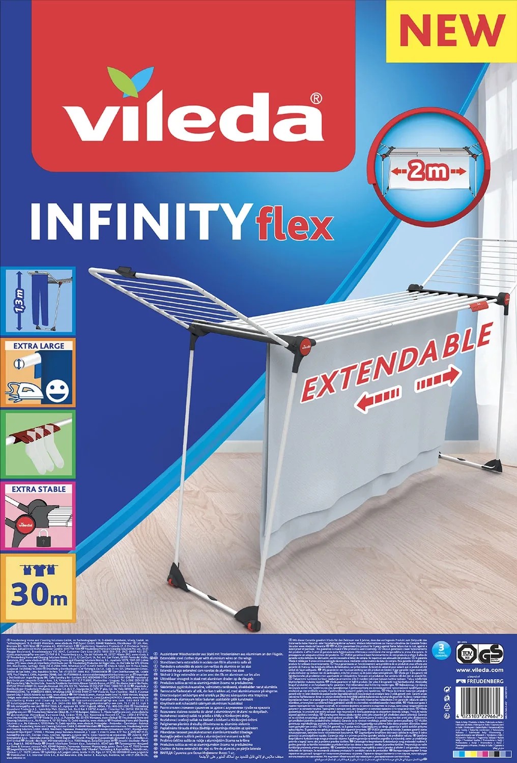 Z Vileda Infinity Flex Plus suszenie obrusów, prześcieradeł czy dużych elementów garderoby jest łatwiejsze niż kiedykolwiek wcześniej.
