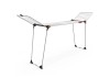 Dodatkowo, blat rozsuwa się teleskopowo w zakresie od 117 cm aż do 205 cm. Pozwala to łatwo powiesić nawet duże elementy bez ich składania. Wysokie skrzydła i podwyższony blat umożliwiają zawieszenie długich części odzieży, tak żeby nie dotykały podłogi. Po rozłożeniu skrzydeł suszarka osiąga rozmiary: 216-304 x 56 x 128 cm. Rozwiązanie to sprawdzi się doskonale, kiedy musimy wysuszyć komplety pościeli, obrusy, koce. Nie ma również obawy o zabrudzenie nawet dużych przedmiotów poprzez kontakt z podłożem. Kiedy suszysz mniejszą partię ubrań, możesz bez problemu złożyć skrzydła, aby oszczędzić miejsce, i umieścić całą konstrukcję nawet w niewielkim pomieszczeniu. Suszarka pokojowa posiada także uchwyty na drobną bieliznę, które stanowią dodatkową przestrzeń na np. skarpetki, rękawiczki.