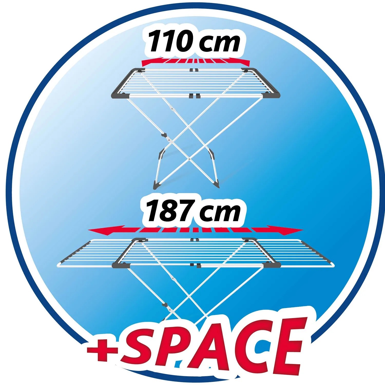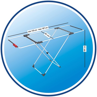 Rozsuwana suszarka Surprise to sprytny sposób na suszenie prania. Suszarka posiada wysuwane skrzydła, które można regulować dowolnie w zależności od potrzebnej powierzchni. Wszechstronność zapewnia jej regulacja długości od 110 cm do 187 cm. Idealnie sprawdzi się do suszenia małego prania, nie zajmując dużej powierzchni. Po rozłożeniu zmieści zaś większą ilość garderoby.