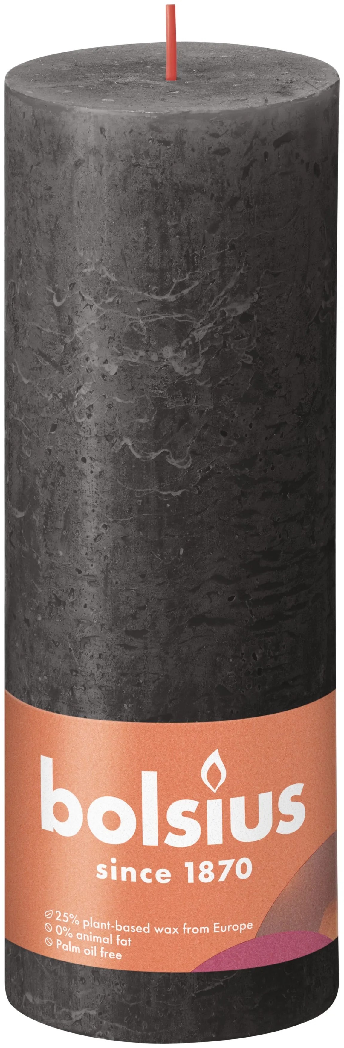 Świeca pieńkowa Rustic marki Bolsius ma surową formę i strukturę, przez co bardzo dobrze pasuje do nowoczesnych wnętrz. Świeca jest w całości zabarwiona i pali się bardzo długo równym i jasnym płomieniem. Świece z serii Rustic to atrakcyjny dodatek do większych pomieszczeń, np. salonów i kuchni połączonych z jadalnią.
