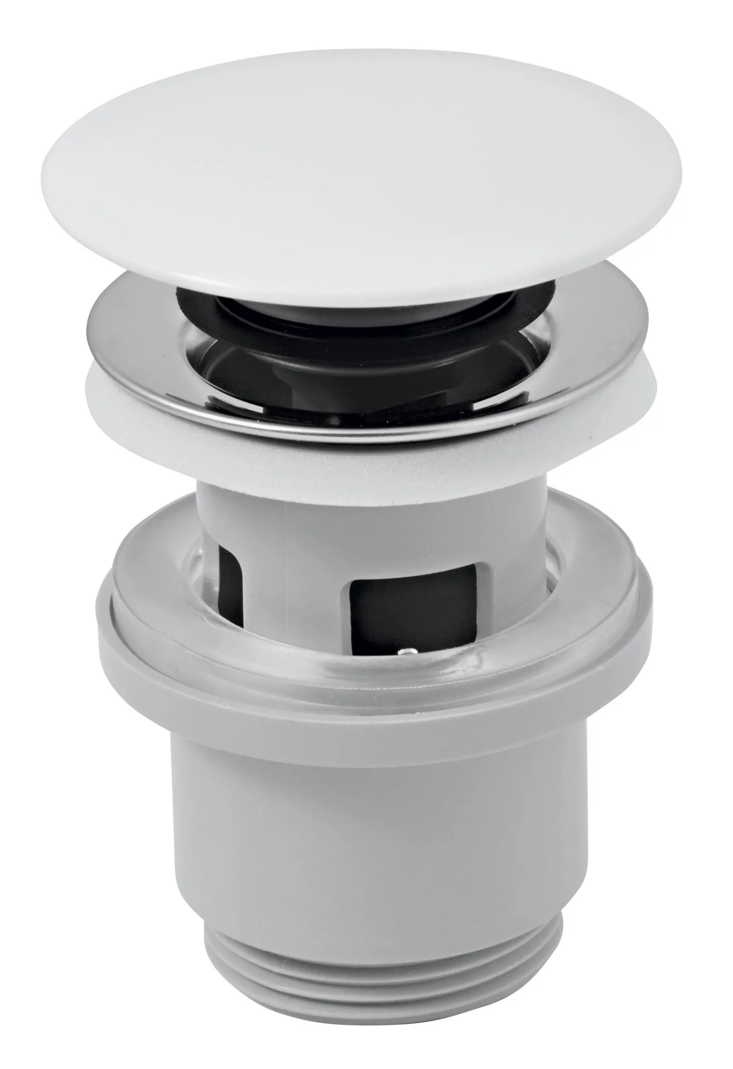 Zamknięcie odpływu następuje po naciśnięciu korka. Powtórne naciśnięcie powoduje otwarcie.