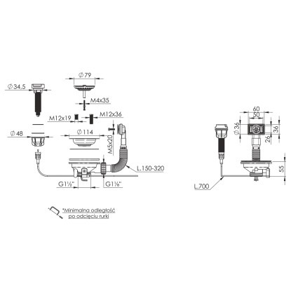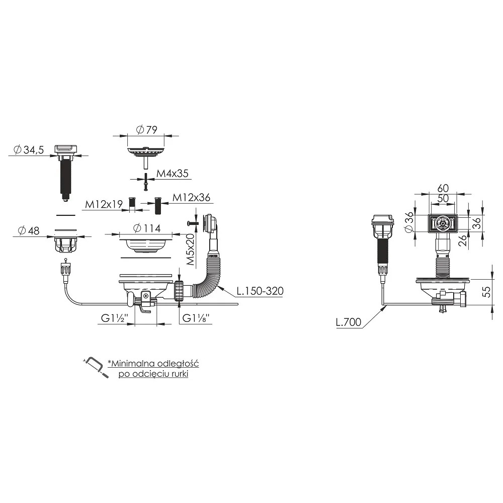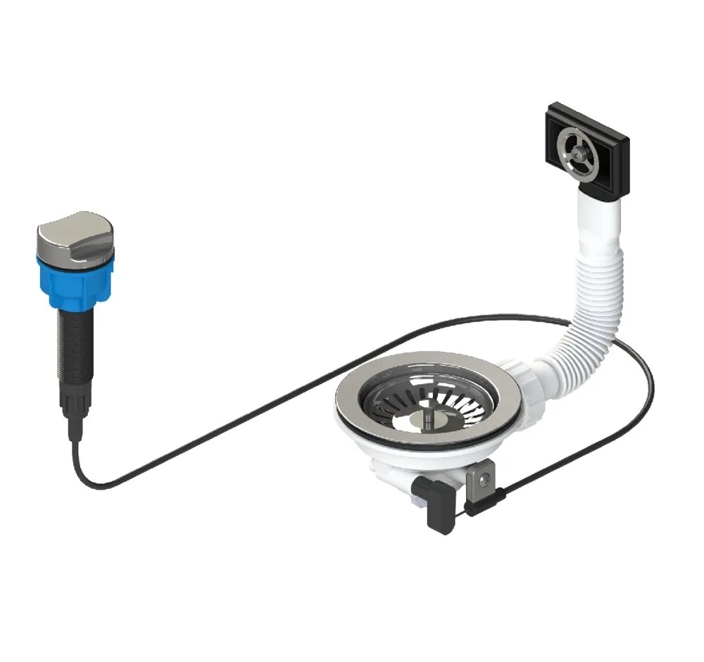 Spust z metalowym sitkiem do zlewu fi 90. Korek automatyczny na pokrętło z linką. Spust z przelew okrągłym lub prostokątnym.