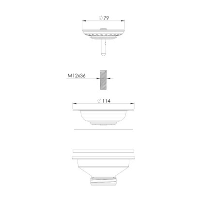 Spust z metalowym sitkiem o średnicy 115 mm. Wykonany z białego tworzywa sztucznego.