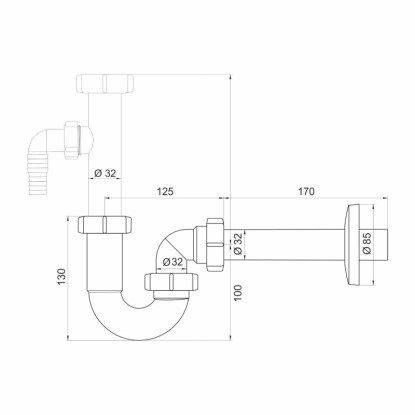 Tycner Syfon umywalkowy rurowy 1 1/4X32 bez spustu z wyjściem na pralkę/ zmywark