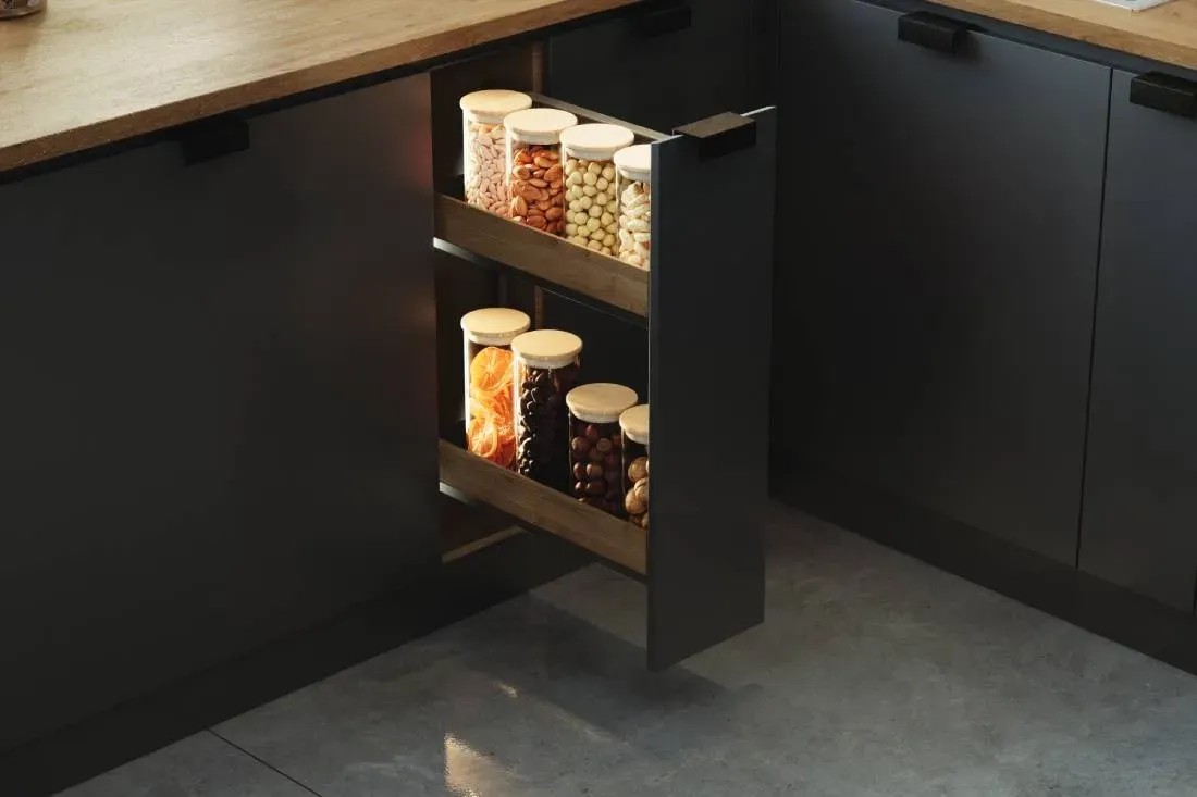 Kosz cargo boczne Puro prawe czarne / dąb mat 20 cm Rejs