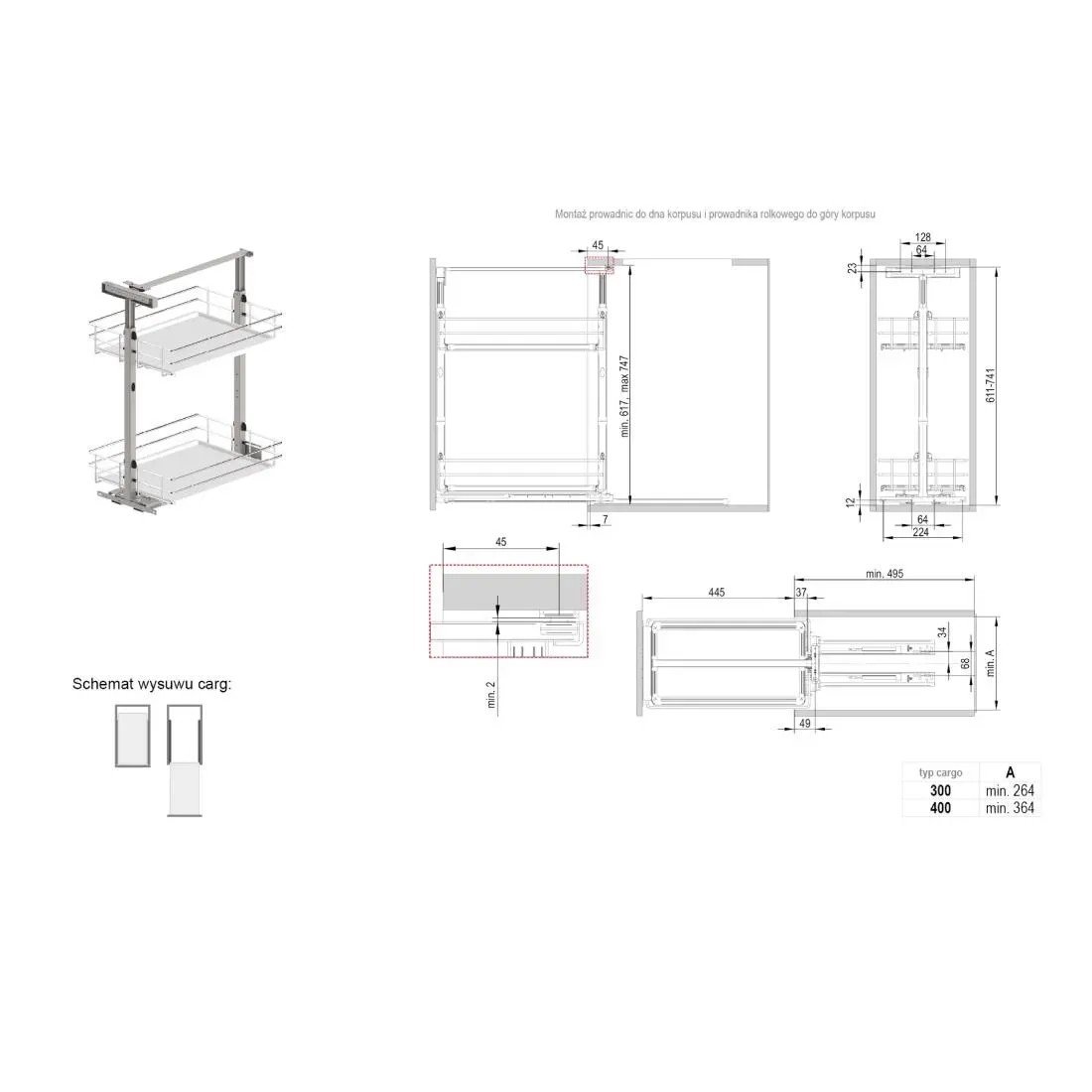 Możliwość regulacji wysokości zawieszenia koszy.