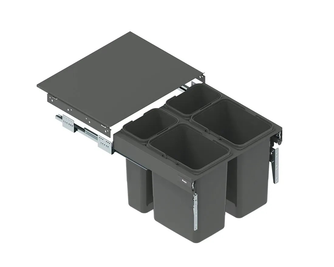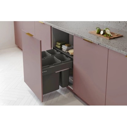 W komplecie znajdują się kosze z tworzywa sztucznego i pokrywa przysłaniająca. Występują w dwóch opcjach kolorystycznych - srebrnej i grafitowej oraz dwóch wariantach wysokości - 32 cm lub 42,5 cm. Głębokość szuflady wynosi 48 cm lub 40 cm. W zależności od preferencji jest możliwość wyboru zestawu do szafki o szerokości zewnętrznej 45 cm i 50 cm (2 kosze na odpady) oraz 60 cm i 80 cm (4 kosze na odpady).