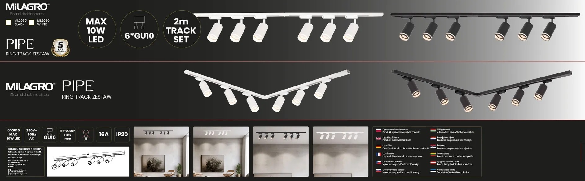 MiLAGRO Zestaw Pipe Track 2m 6xGU10 10W biały