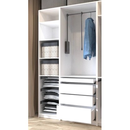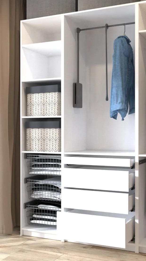 Meble modułowe będą doskonałym wyborem dla osób, które chcą samodzielnie zaaranżować swoją garderobę. Sam projekt jest prosty i intuicyjny, wystarczy według własnych preferencji, a także potrzeb skompletować elementy wyposażenia, a następnie stworzyć z nich dowolne konfiguracje.Garderoby modułowe sprawdzą się w każdym pomieszczeniu, również ciasnym czy niewymiarowym. Będą też doskonałą odpowiedzią na Twoje indywidualne potrzeby. Jeśli potrzebujesz więcej półek, szuflad, czy szafek, wystarczy, że wybierzesz więcej tego typu elementów. Sprawdź także inne akcesoria, które mogą być przydatne w organizacji szafy. Kliknij tutaj.