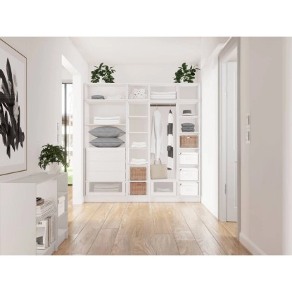 Stwórz swoją garderobę marzeń. Wybierz odpowiednie elementy (korpusy stojące, półki, szuflady, fronty) i ustal wybraną konfigurację.Meble modułowe możesz dowolnie łączyć zarówno w poziomie, jak i w pionie dopasowując do wielkości pomieszczenia, a także swoich potrzeb. Delikatna i subtelna kolekcja marki doda pomieszczeniu klasy i elegancji. Klasyczne kolory i ponadczasowe wzornictwo sprawiają, że meble sprawdzą się w nowoczesnych i minimalistycznych wnętrzach.