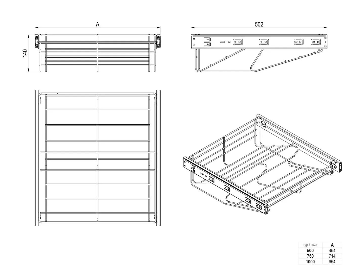 Kosz został wykonany z metalu, co zapewnia nie tylko solidność, ale także estetyczny wygląd i łatwość czyszczenia. Szuflada jest odpowiednia do szafek o szerokości 100 cm. Dostępne są również warianty do szafek 50 cm i 75 cm, dzięki czemu możesz dostosować garderobę do swoich potrzeb. Zestaw zawiera niezbędne elementy montażowe, które ułatwią Ci instalację szuflady w korpusie garderoby.