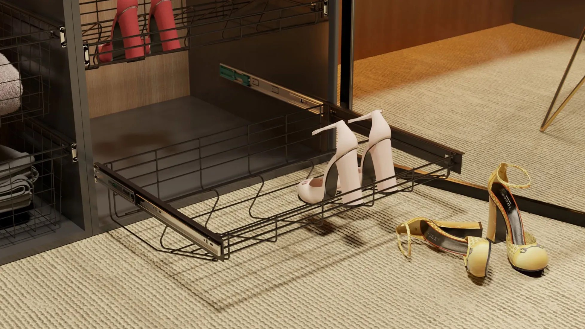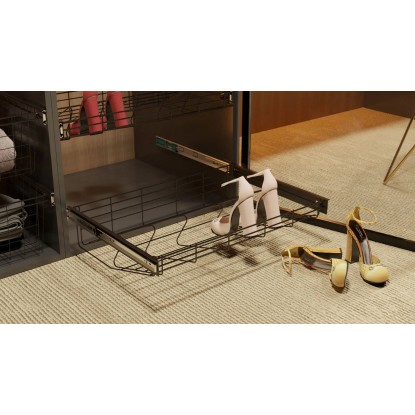 Wysuwany kosz do garderoby przeznaczony do przechowywania obuwia to praktyczne rozwiązanie, które pomoże Ci utrzymać porządek w szafie i zachować buty w doskonałym stanie. Szuflada na obuwie to niezastąpiony element wyposażenia, który pomoże efektywnie uporządkować przestrzeń oszczędzając miejsce.