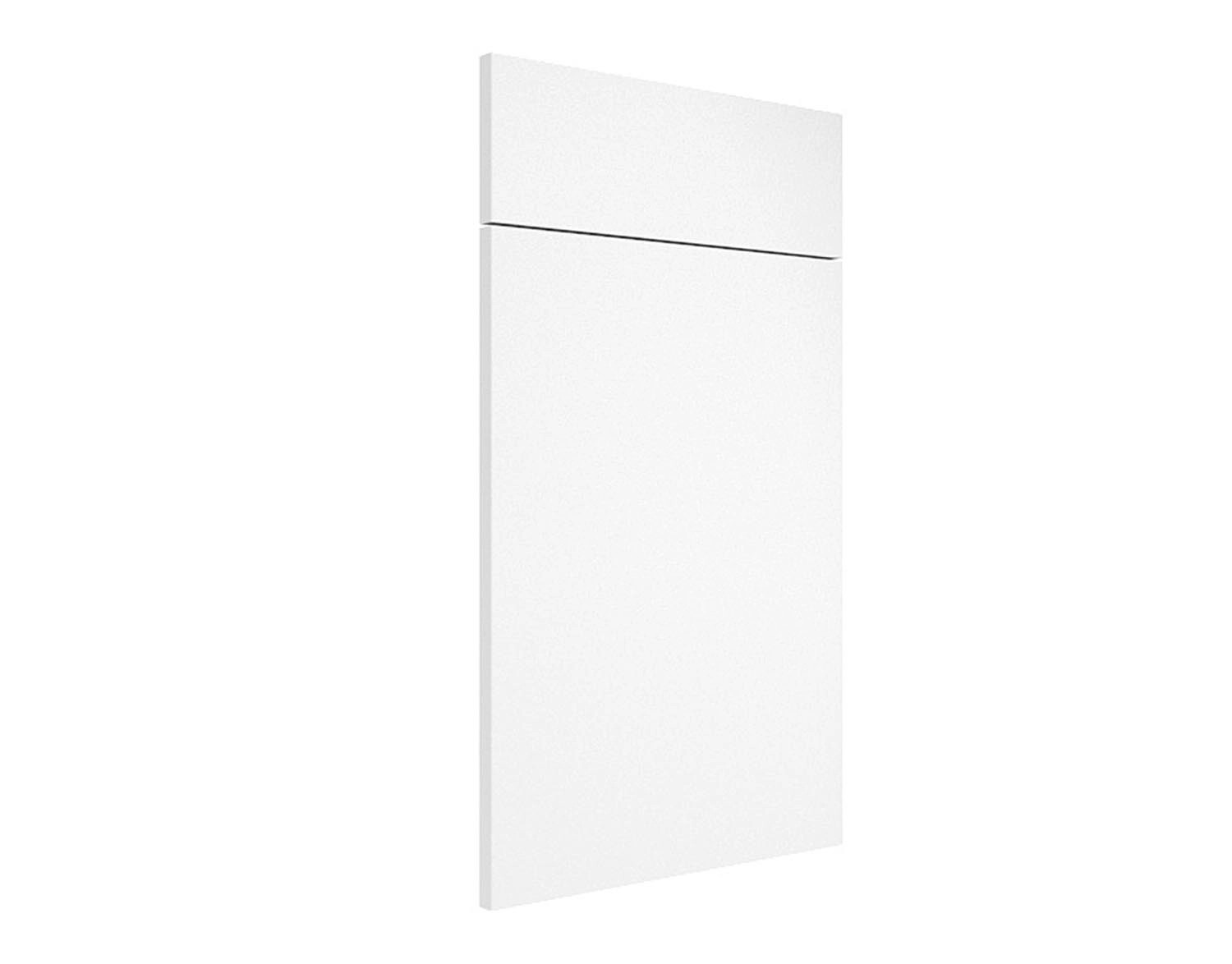 Zestaw frontów Roma Biały Mat składający się z jednego frontu o wymiarach: 56 x 40 x 1,8 cm i jednego frontu o wymiarach: 14 x 40 x 1,8 cm przeznaczony do szafki kuchennej z szufladą.