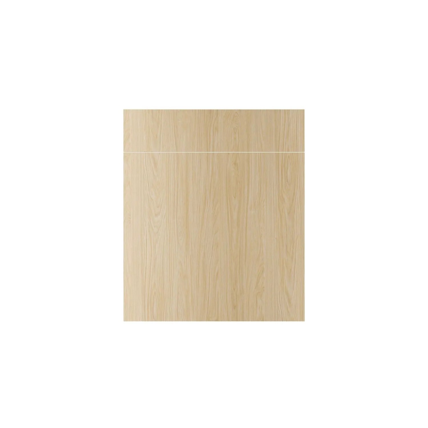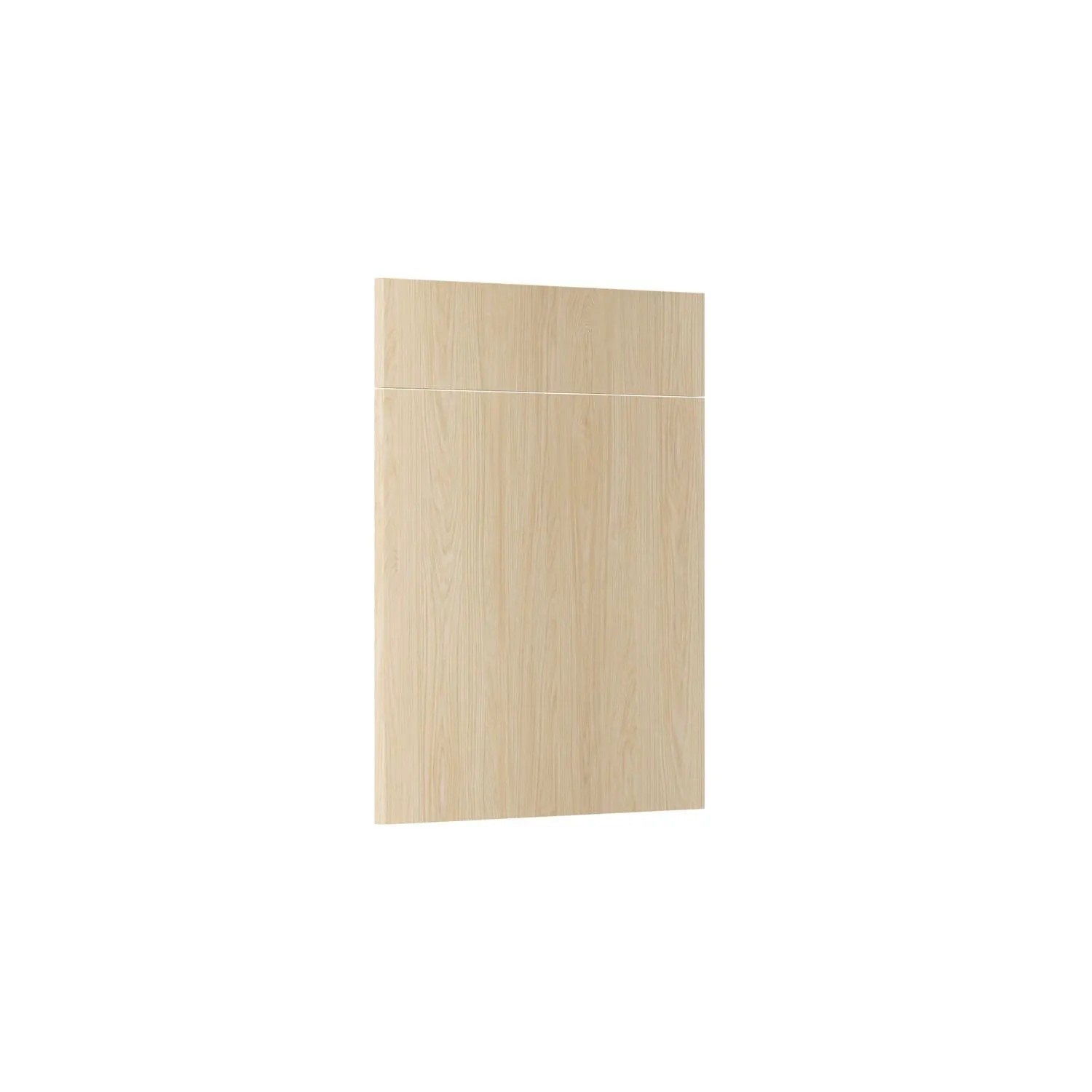 Zestaw frontów Roma Dąb Casella naturalny jasny składający się z jednego frontu o wymiarach: 59,7 x 56,6 cm i jednego frontu o wymiarach: 59,7 x 14 cm, przeznaczony do szafki kuchennej z szufladą.