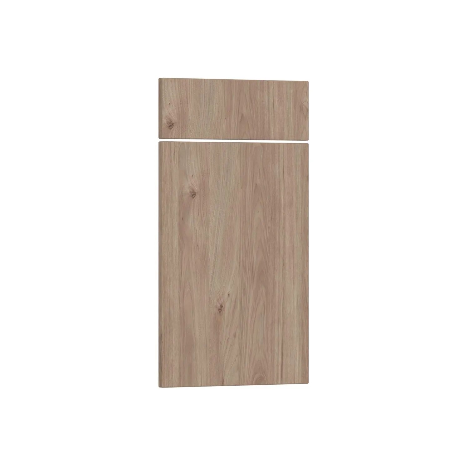 Zestaw frontów Roma J. Hickory składający się z jednego frontu o wymiarach: 56 x 40 x 1,8 cm i jednego frontu o wymiarach: 14 x 40 x 1,8 cm, przeznaczony do szafki kuchennej z szufladą.