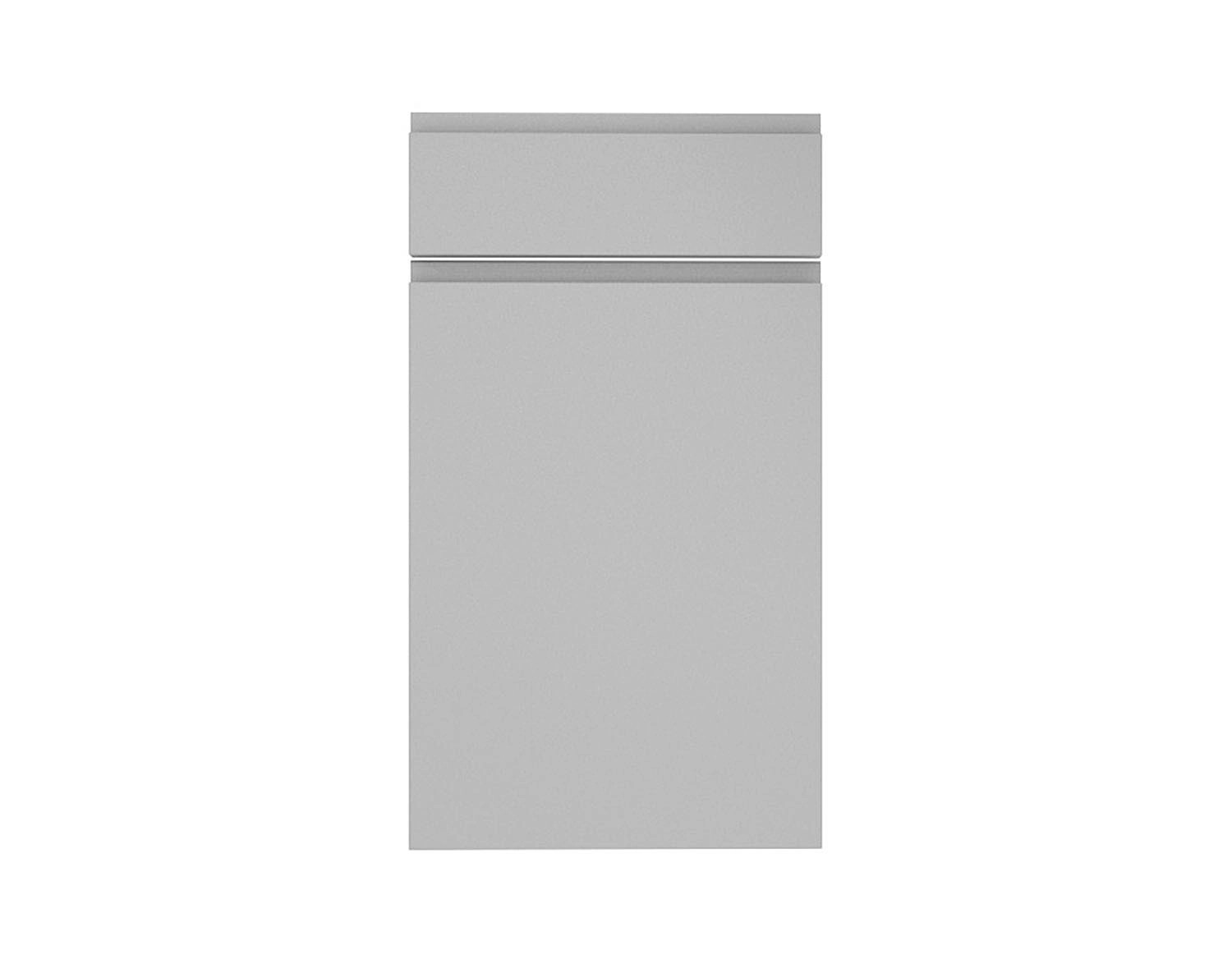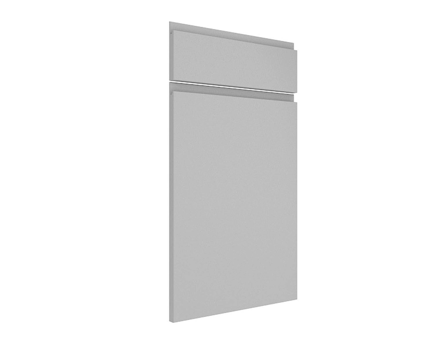 Zestaw frontów Verona Szary Mat składający się z jednego frontu o wymiarach: 39,7 x 56,6 cm i jednego frontu o wymiarach: 39,7 x 14 cm przeznaczony do szafki kuchennej z szufladą.
