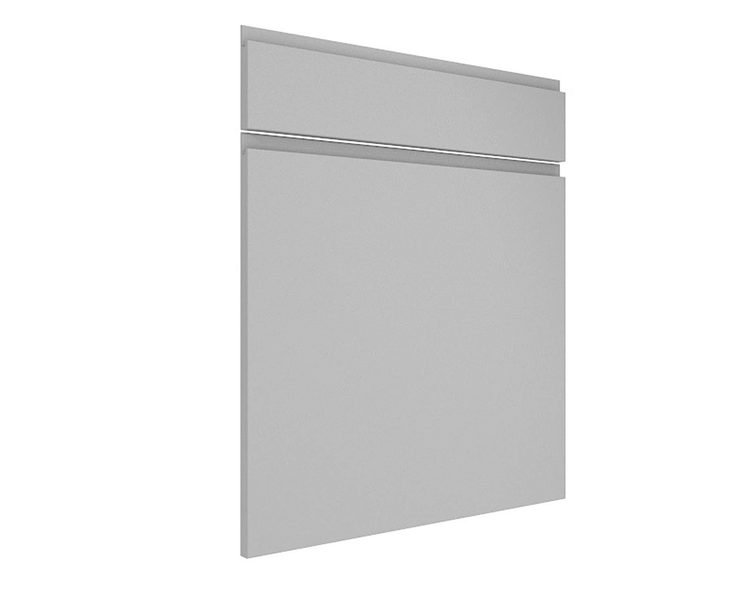 Zestaw frontów Verona Szary Mat składający się z jednego frontu o wymiarach: 59,7 x 56,6 cm i jednego frontu o wymiarach: 59,7 x 14 cm przeznaczony do szafki kuchennej z szufladą.