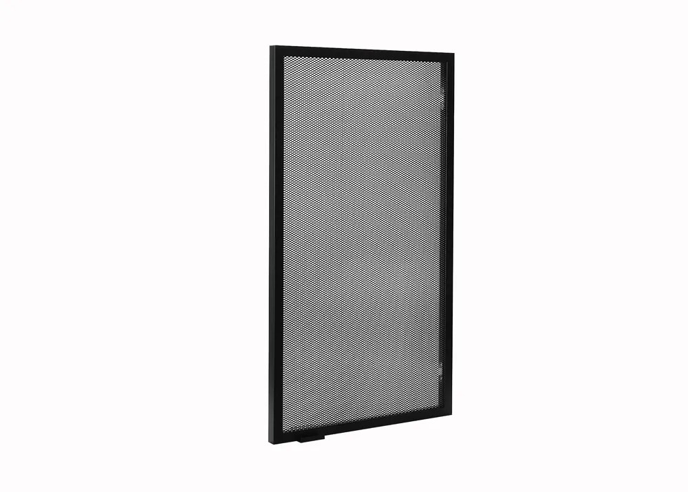 Wykonanie: aluminiowy front meblowy w czarnej anodzie, siatka stalowa lakierowana proszkowo na kolor czarny