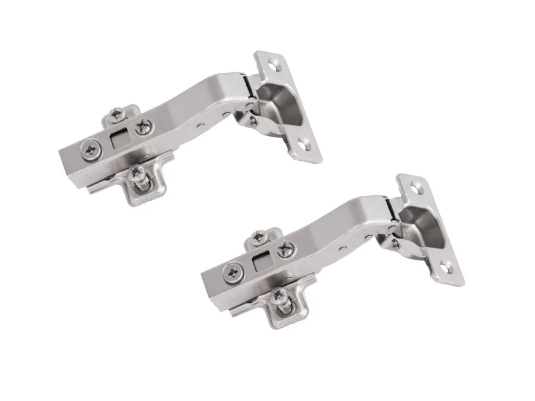 Zawiasy kątowe 45° z cichym domykiem. Komplet zawiera dwie sztuki zawiasów.