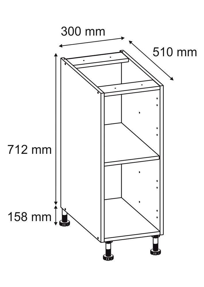 Korpus dolny jest jednym z komponentów nowoczesnego, modułowego wyposażenia kuchni. Wysokiej jakości płyta laminowana, z której jest wykonany zapewnia odporność na wilgoć, zarysowania i łatwość w utrzymaniu. Klasyczny biały matowy kolor bardzo ładnie prezentuje się w każdej kuchni. Zachwyca prostotą i starannym wykończeniem. Szerokość korpusu wynosi 30 cm, wysokość 87 cm, głębokość 51 cm. Możemy przechowywać w nim wszystkie niezbędne kuchenne akcesoria czy naczynia. Do montażu frontu należy użyć 2 szt. zawiasów 110 stopni.