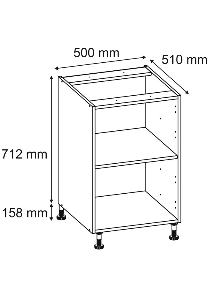 Korpus dolny ma 50 cm szerokości, 87 cm wysokości i 51 cm głębokości. Klasyczny biały matowy kolor spełni oczekiwania każdej osoby i będzie pasował do aranżacji większości kuchni. Do montażu frontu potrzebujemy 2 szt. zawiasów 110 stopni. Wykonanie z płyty laminowanej gwarantuje wytrzymałość i solidność produktu, który będzie służył latami. Doskonale pomieści wszystkie potrzebne przybory kuchenne, naczynia czy artykuły spożywcze. W ofercie znajdziesz także inne korpusy kuchenne, z których możesz stworzyć zestaw dostosowany do wielkości pomieszczenia.