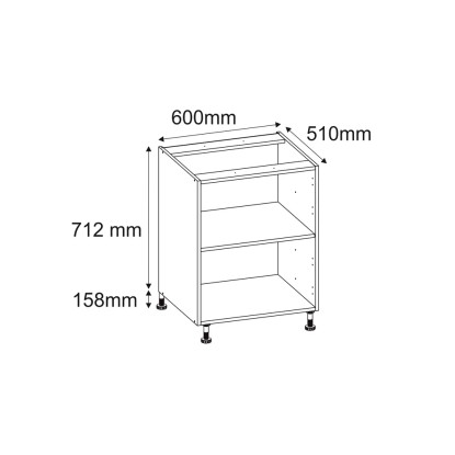 Korpus dolny pomoże stworzyć w pełni funkcjonalną i dobrze zorganizowana kuchnię. Zapewnia dużą wygodę na co dzień, pomieści i uporządkuje naczynia, przybory i artykuły spożywcze. Szerokość korpusu wynosi 60 cm, wysokość 87 cm i głębokość 51 cm. Wykonanie z laminatu gwarantuje najlepszą jakości, trwałość i wytrzymałość na wilgoć. Biały matowy kolor sprawdzi się w każdej kuchni i będzie pasował do każdego koloru frontów. Do montażu frontu potrzebujemy 2 szt. zawiasów 110 stopni.