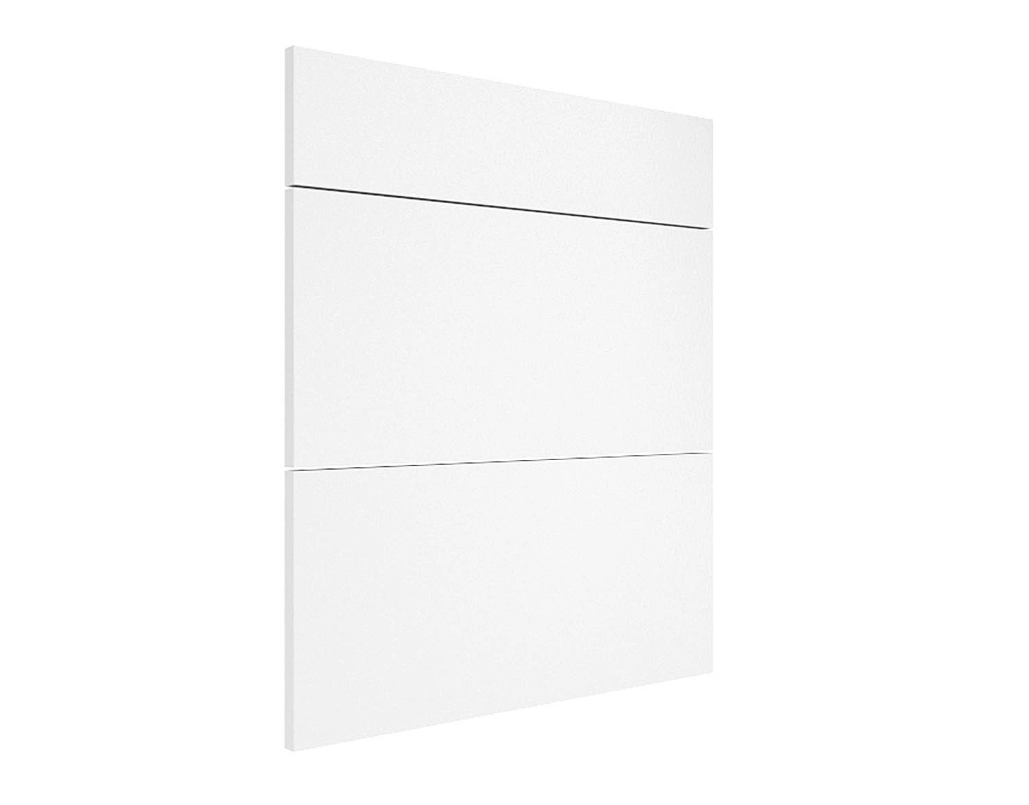 Zestaw frontów Roma Biały Mat składający się z jednego frontu o wymiarach: 14 x 60 x 1,8 cm i dwóch frontów o wymiarach: 28 x 60 x 1,8 cm przeznaczony do szafki kuchennej z szufladami.