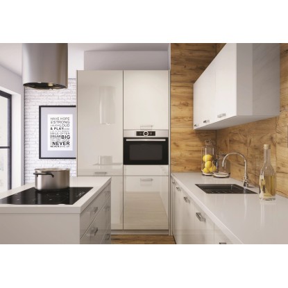 Szafka wykonana z wysokiej jakości materiałów przeznaczona do zabudowy. Płyta akrylowa w wysokim połysku, kolor biały. W celu zwiększenia komfortu użytkowania szafka wyposażona została w system samodomykania.