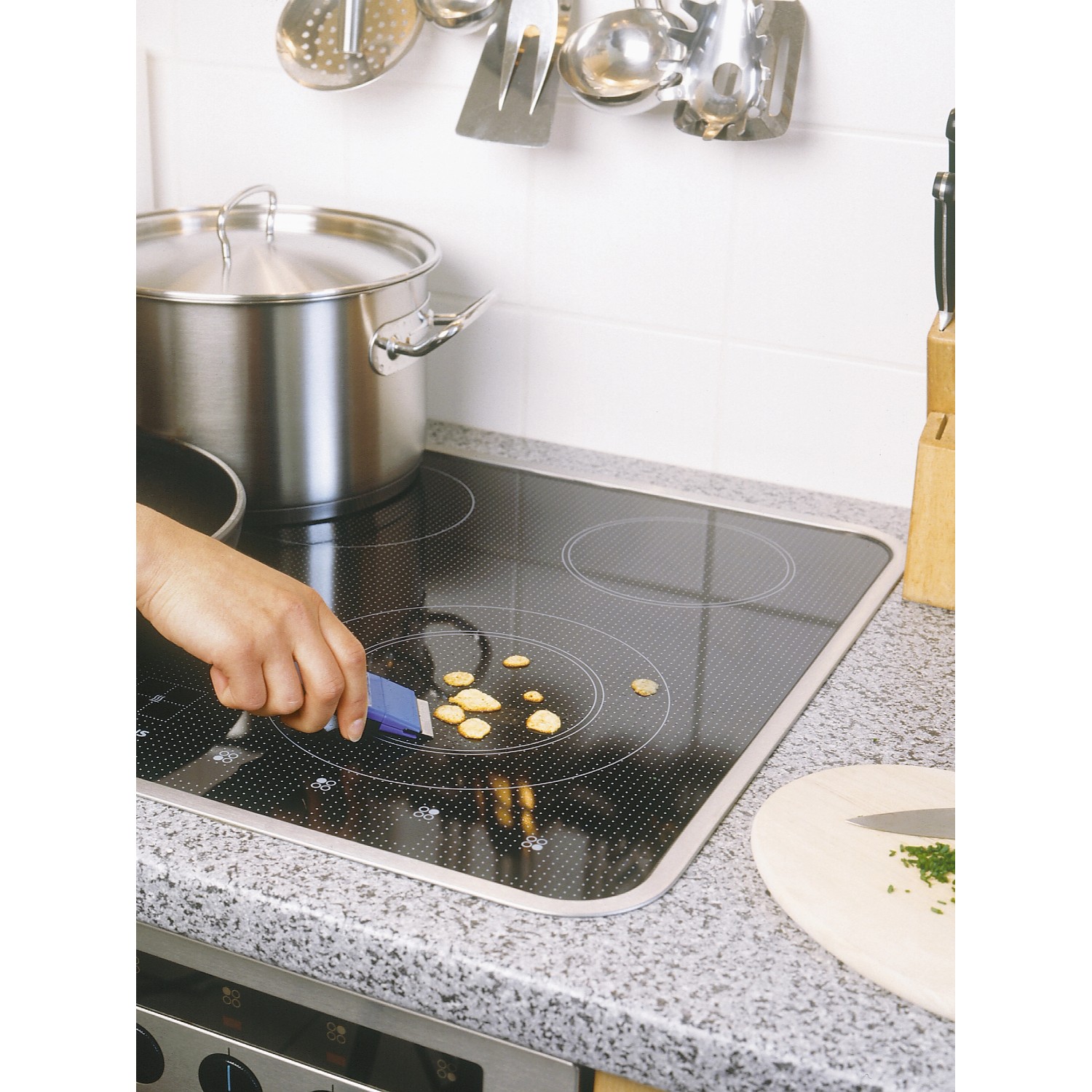 Wszechstronny, uniwersalny skrobak służy do czyszczenia płyt szklanych lub ceramicznych. Uporczywy brud można łatwo usunąć, po prostu zeskrobując. Skrobak składa się z ostrza z hartowanej stali oraz obudowy wykonanej z wytrzymałego tworzywa sztucznego.