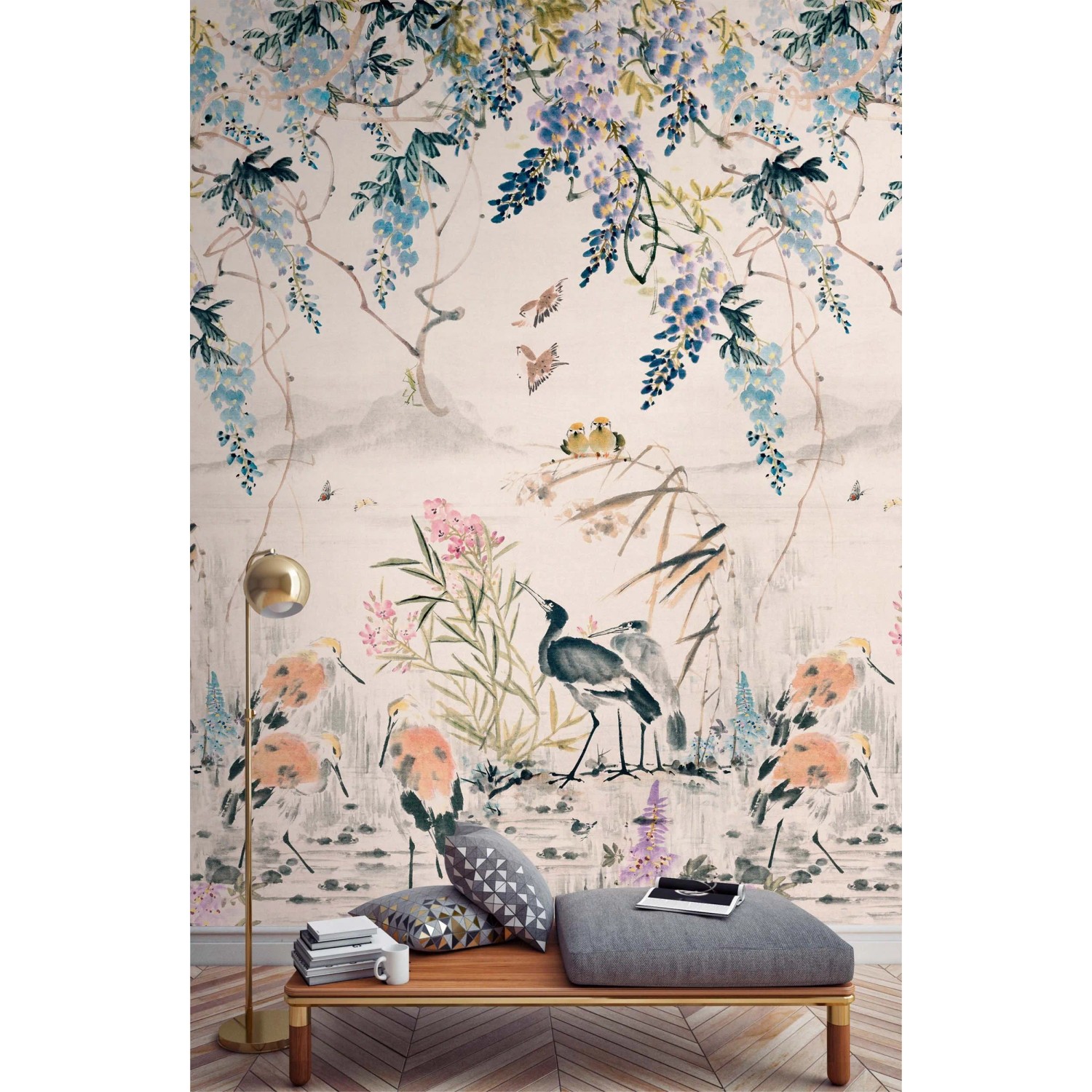 Drobne kwiatki i barwne ptaszki w łagodnej kolorystyce tworzą piękny obraz ogrodu japońskiego. Ten inspirowany naturą wzór emanuje spokojem i sprawdzi się w wielu przestrzeniach, zwłaszcza tam, gdzie zależy nam na relaksującej, przytulnej atmosferze. Atrakcyjności wizualnej towarzyszy łatwość aplikacji i podwyższona odporność.