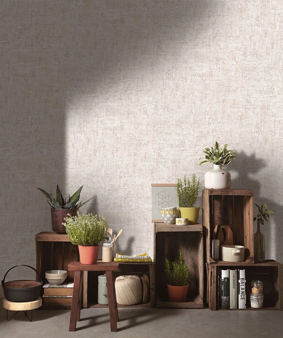 Tapeta winylowa na podkładzie flizelinowym z motywem przetartego beżowego tynku to propozycja dla osób, które chcą wprowadzić do swojego wnętrza surowy i industrialny styl. Przetarty tynk, którym została pokryta ta tapeta, nadaje jej oryginalnego charakteru i sprawia, że wnętrze zyskuje nowoczesny i nowatorski wygląd.
