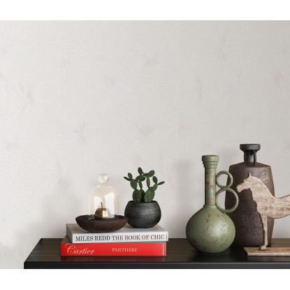 Motyw przecierki tynku imitujący efekt postarzenia nadaje powierzchni tapety interesującej struktury, dodając pomieszczeniu ciepła i przytulności. Wzór wachlarzy tworzy geometryczne motywy, które nadają wnętrzu artyzmu i elegancji. Kolor bieli na tle tapety dodaje przestrzeni jasności i optycznie powiększa pomieszczenie, dzięki czemu tapeta idealnie sprawdzi się w małych wnętrzach.