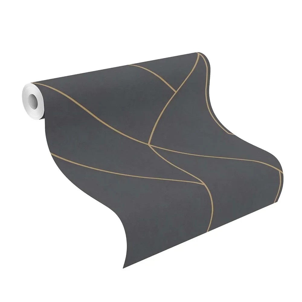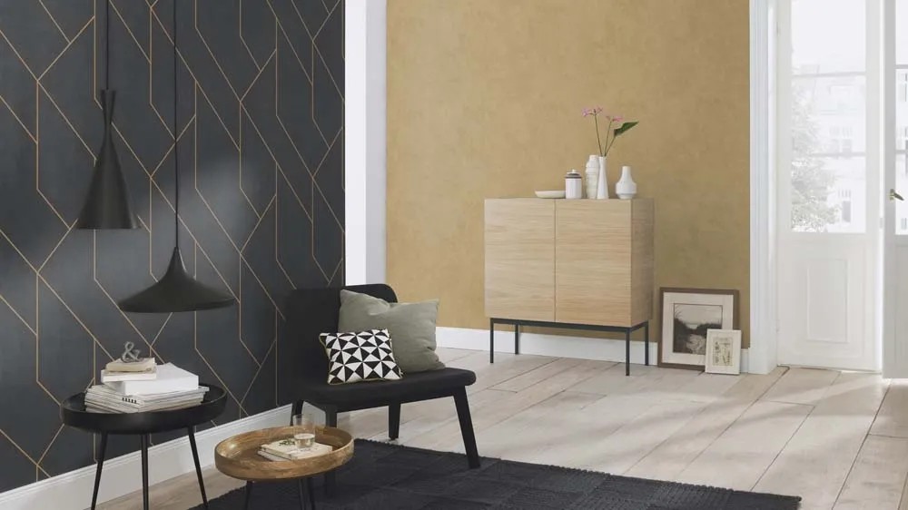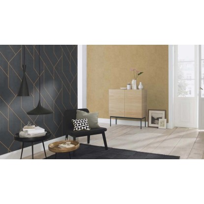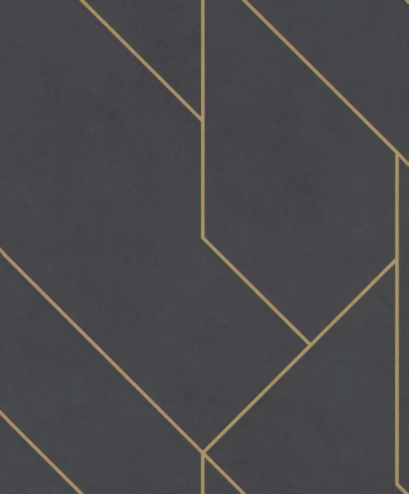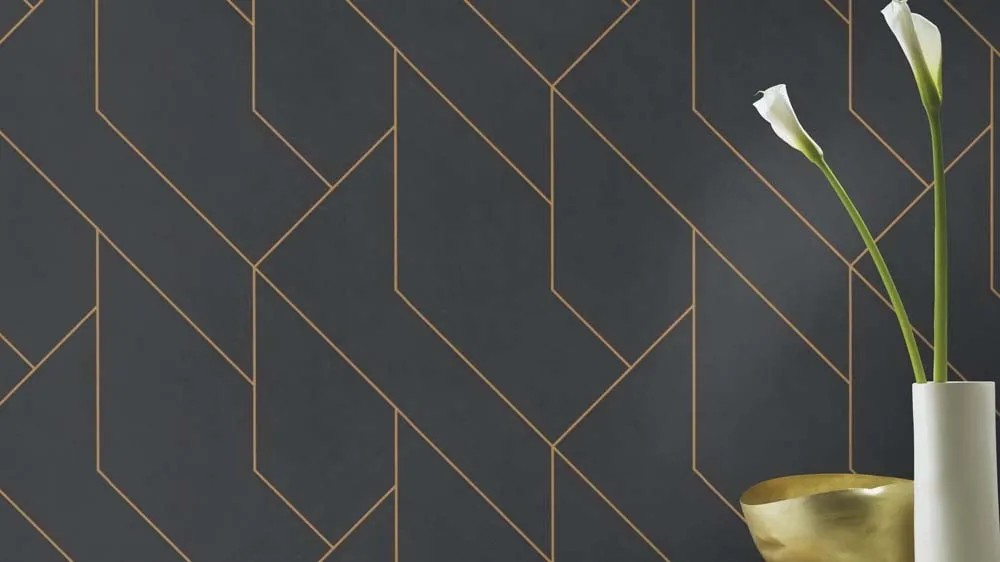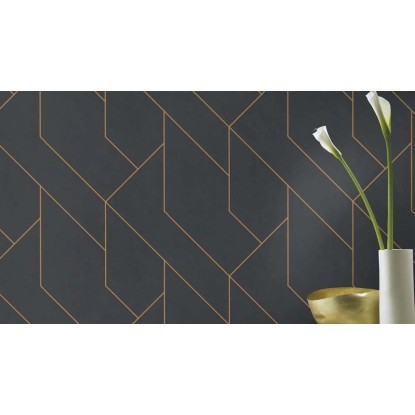 Tapetę zdobi abstrakcyjny, nieco geometryczny wzór. Złote linie na czarnym tle tworzą efektowny kontrast. Tapeta nada Twojemu wnętrzu designerskiego charakteru. Jej kolorystyka choć wyrazista dobrze połączy się z każdym kolorem mebli czy dodatków. Tapeta stworzy spójne połączenie zarówno z wnętrzem nowoczesnym, eleganckim czy glamour.