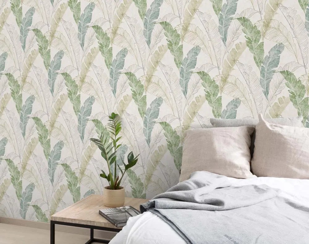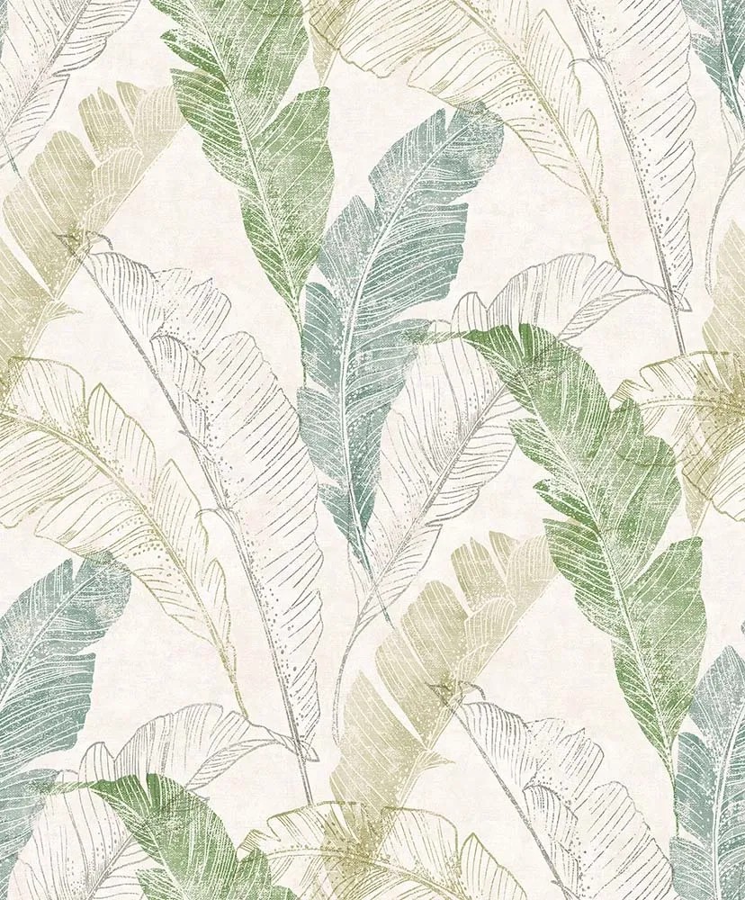 Tapetę zdobią liście w różnych odcieniach zieleni na jasnym tle. Prezentuje się ona niezwykle stylowo i nowocześnie. Tapeta w żywych kolorach wizualnie rozjaśni wnętrze i doda mu designerskiego wyglądu. Dobrze się ona połączą z dodatkami w każdym stylu i kolorze. Tapeta będzie pasować do salonu, sypialni, gabinetu czy pokoju dziecka. .