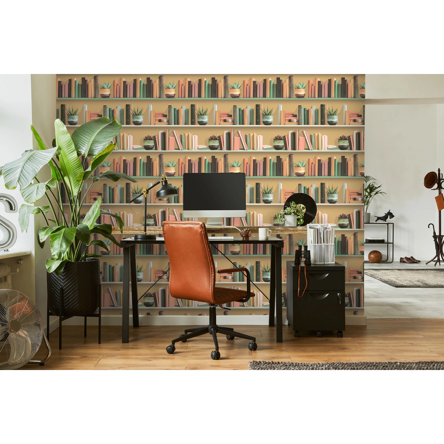 Tapeta imitująca regał z kolorowymi książkami to niezwykle oryginalny wybór, który wprowadza do wnętrza nie tylko estetyczne wykończenie, ale także kreatywny charakter. Taki wzór dodaje pomieszczeniu barw i stylu, tworząc atmosferę domowej biblioteki lub eleganckiego salonu. Tapeta odwzorowuje wygląd regału pełnego książek, a żywa, różnorodna kolorystyka wprowadza zupełnie nową energię do wnętrza. Model ten sprawdzi się także idealnie w pokoju dziecka lub modnego nastolatka. Ma w sobie humor, luz i wyrazistość.