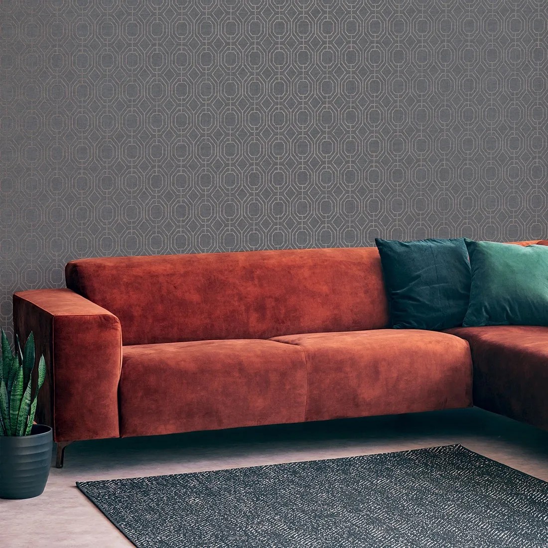 Tapeta zachwyca prostym ale niebanalnym designem. Jej faktura przypomina cienkie, tkane płótno. Daje to wysmakowany i elegancki efekt. Połączenie szaro-betonowego tła ze złotym ornamentem sprawia, że tapeta jest uniwersalna - będą no niej pasować meble i dodatki w praktycznie każdym kolorze. Możesz zyskać unikalny, oryginalny wystój zestawiając ją z inną tapetą, farbą czy panelami ściennymi. Tapeta będzie się dobrze prezentować w pomieszczeniu w każdym stylu - nowoczesnym, boho, minimalistycznym czy klasycznym.