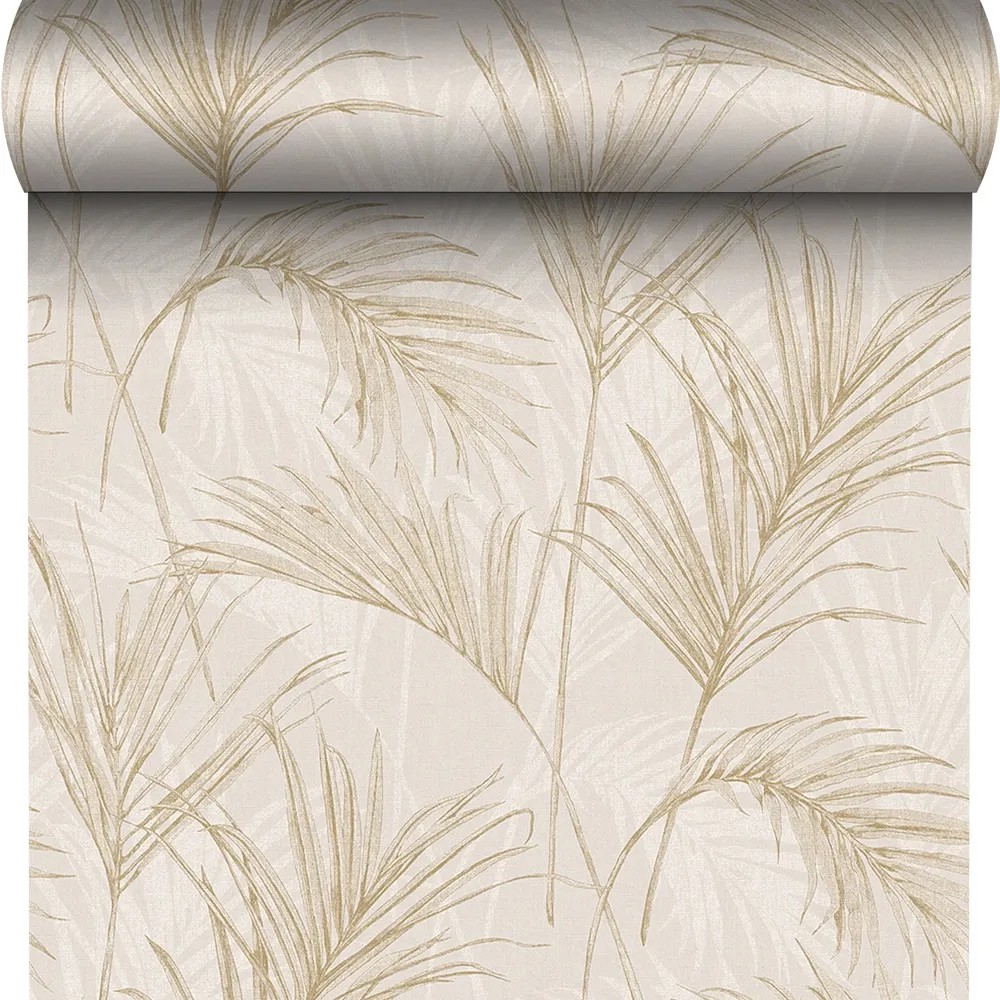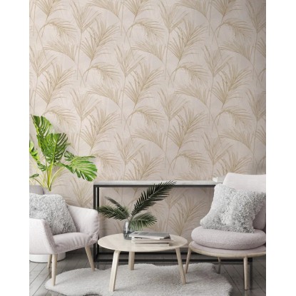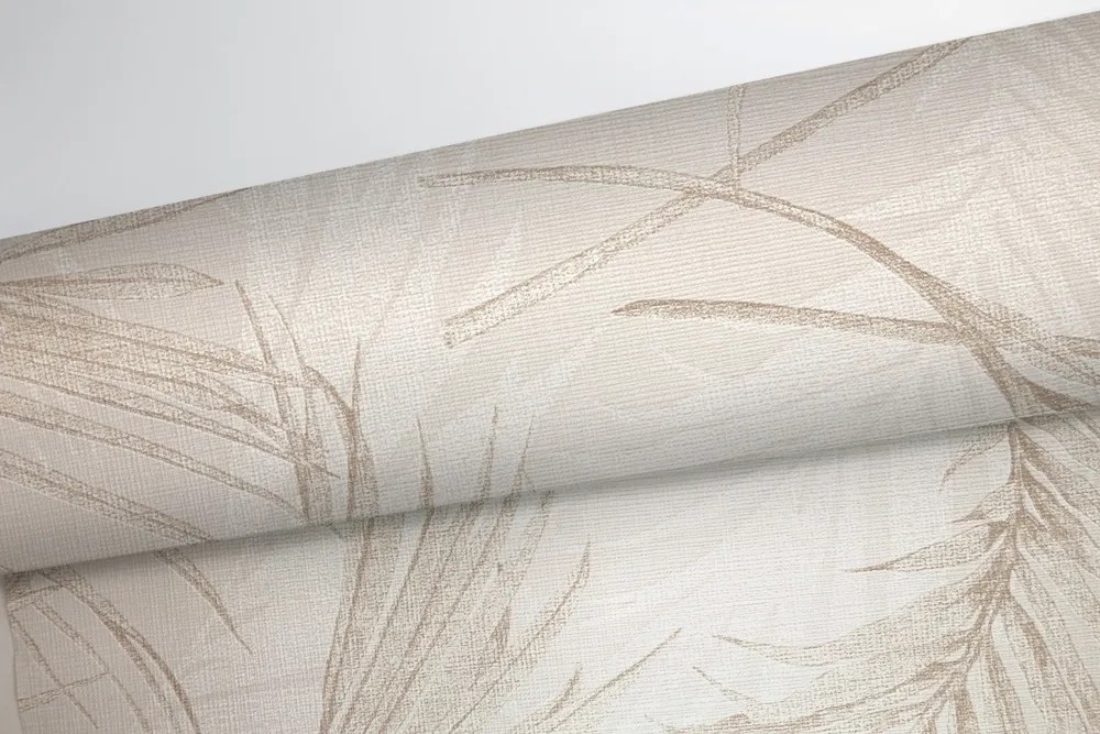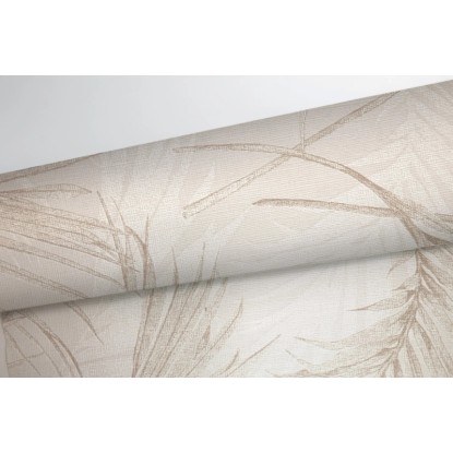 Tapetę zdobi wzór liści palmy. Takie roślinne akcenty są obecne w aktualnych trendach wnętrzarskich. Ten efektowny wzór utrzymany w odcieniach beżu wygląda niezwykle elegancko a jednocześnie nowocześnie. Dzięki stonowanej kolorystyce mimo, że tapeta jest wyrazista nie dominuje wnętrza. Pasuje również do dodatków w każdym kolorze. Tapeta będzie się pięknie prezentować w sypialni, salonie czy gabinecie, jej wzór jest uniwersalny.