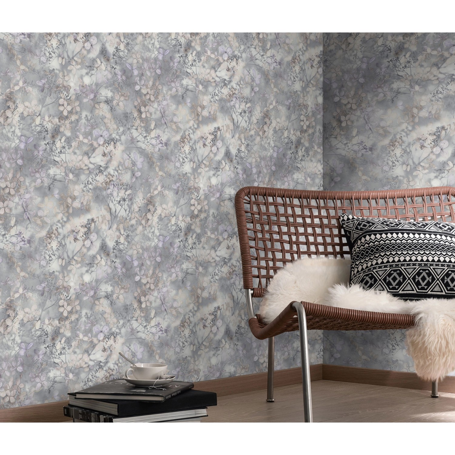 Tapeta winylowa na flizelinie pastelowe listki siwe