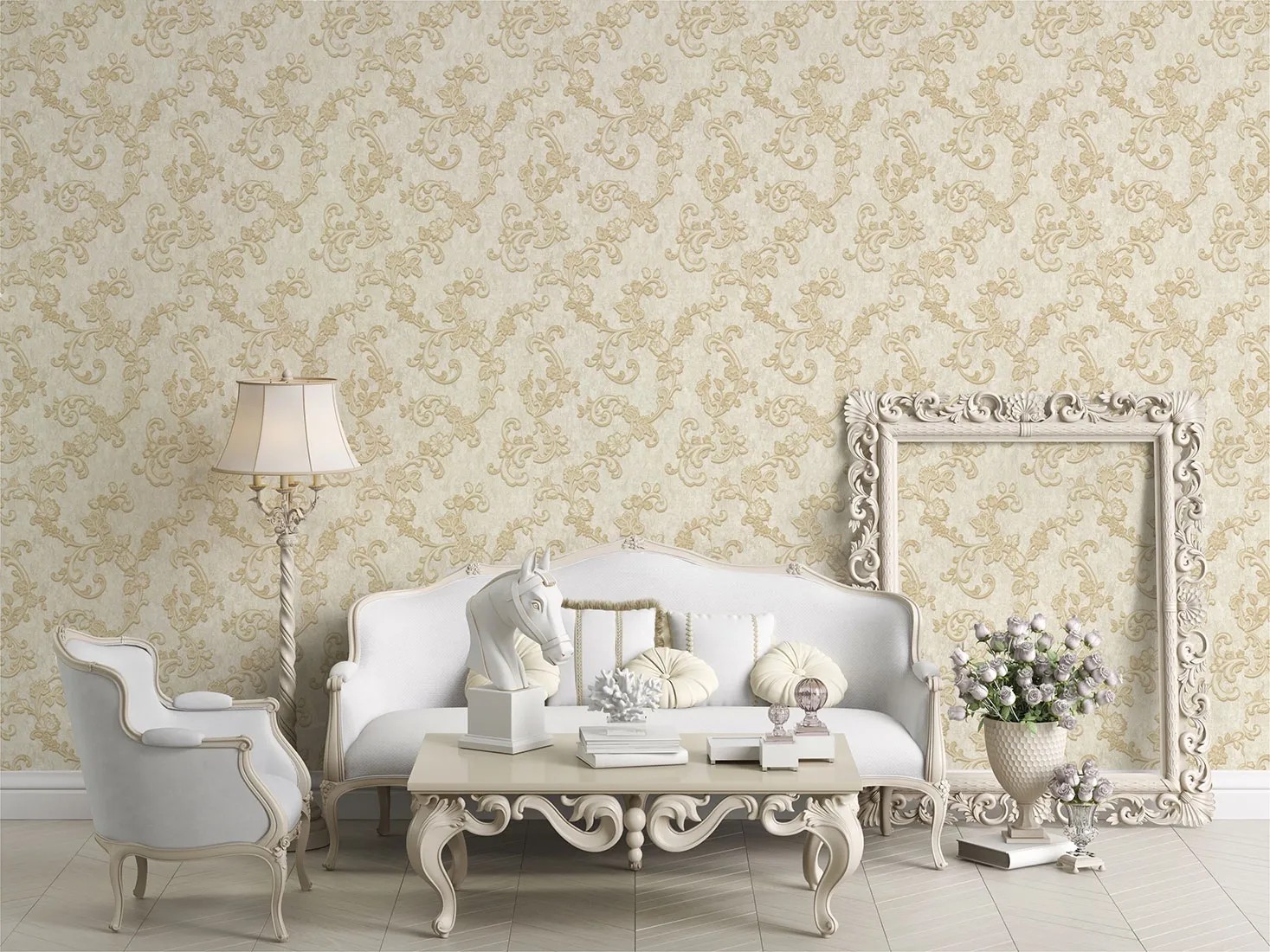 Ponadczasowy motyw w jasnej, spokojnej kolorystyce będzie się pięknie prezentował w sypialni, salonie czy gabinecie. Doda wnętrzom luksusowego charakteru oraz klasycznej elegancji. Tapeta pięknie połączy się z wyposażeniem w stylu glamour oraz klasycznymi aranżacjami. Jej uniwersalny kolor będzie pasować do dodatków w każdym kolorze.