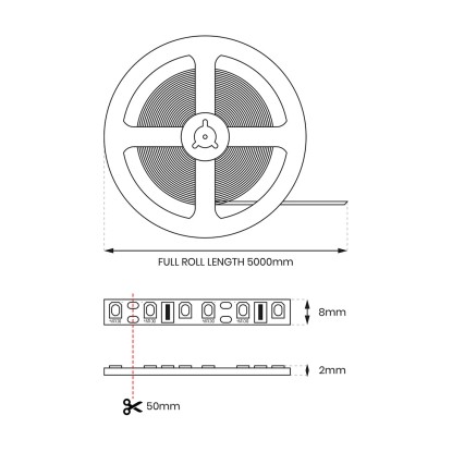 Taśma LED COB o długości 5m zakończona szybko złączką, gdzie źródłem światła są diody COB układające się w jednolitą linie świetlną. Taśma zbudowana jest na solidnym podkładzie PCB i pracuje pod napięciem 24V. Produkt można ciąć w oznaczonych miejscach, dzięki czemu daje się dostosować według potrzeby do miejsca montażu.