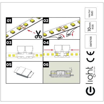 Złączka przeznaczona do połączenia taśm LED RGB o szerokości 10 mm bez konieczności lutowania.